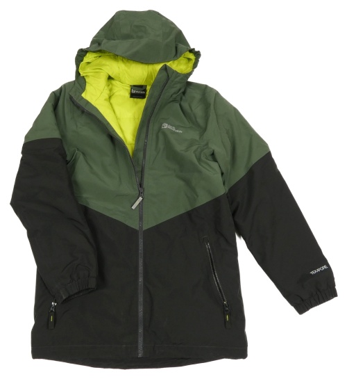 Khaki-černá šusťáková zateplená funkční bunda s logem a kapucí Jack Wolfskin