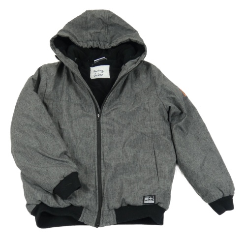 Šedo-černá melírovaná šusťáková zimní bunda s kapucí