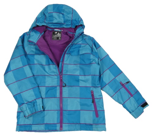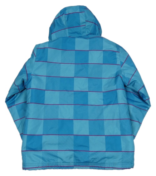 Modrá kostkovaná šusťáková zimní bunda s kapucí