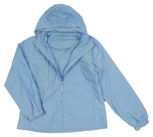 Světlemodrá šustáková jarní bunda s proužky a ukrývací kapucí Alive