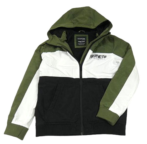 Khaki-bílo-černá šusťáková zateplená bunda s nápisem a kapucí Chapter Young