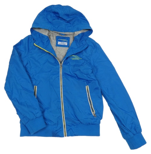 Modrá šusťáková jarní bunda s nápisem a kapucí Chapter young