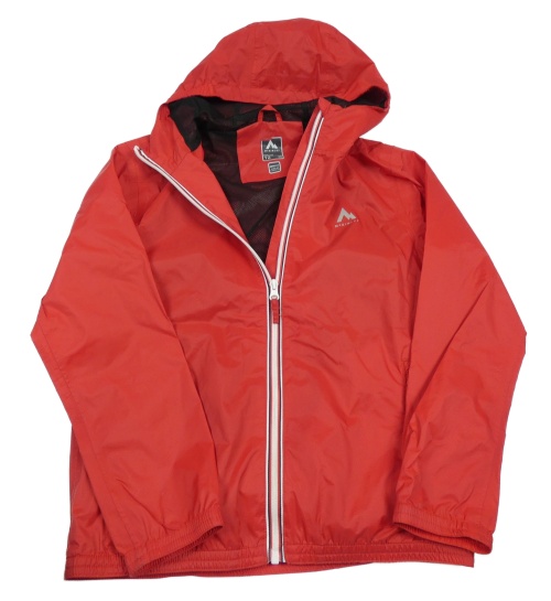 Červená kostkovaná šusťáková funkční jarní bunda s logem a kapucí McKinley
