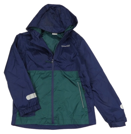 Tmavomodro-zelená šusťáková funkční bunda s nápisem a kapucí Crane