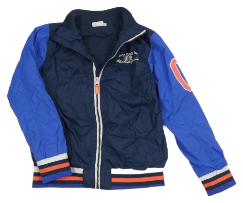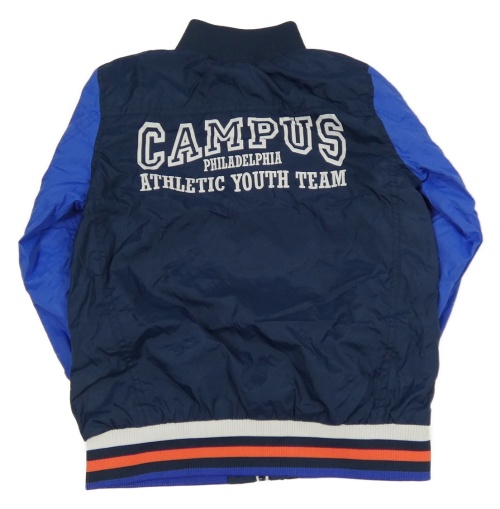 Tmavomodro-modrá šusťáková jarní bunda s nápisem stop+go
