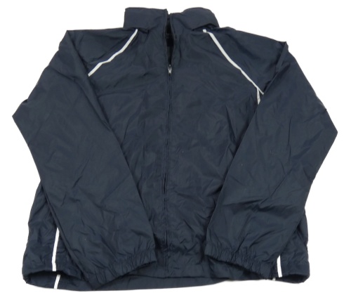 Tmavomodrá šusťáková sportovní bunda s ukrývací kapucí