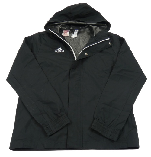 Černá šusťáková nepromokavá bunda s logem a kapucí Adidas