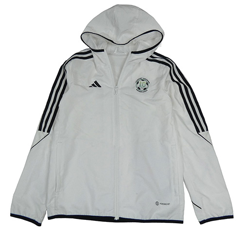 Bílá šusťáková sportovní funkční bunda s potiskem a kapucí Adidas