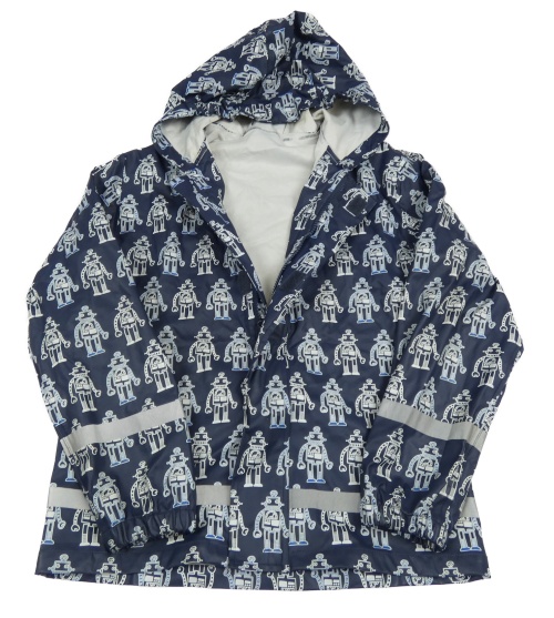 Tmavomodrá nepromokavá bunda s roboty a kapucí