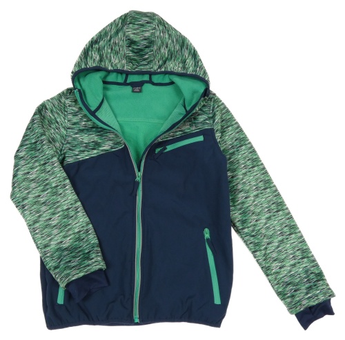 Tmavomodro-zelená softshellová bunda s melírováním a kapucí Y.F.K.