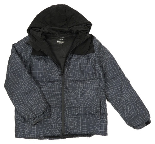 Černo-tmavošedo-kostkovaná šusťáková zimní bunda s kapucí Primark