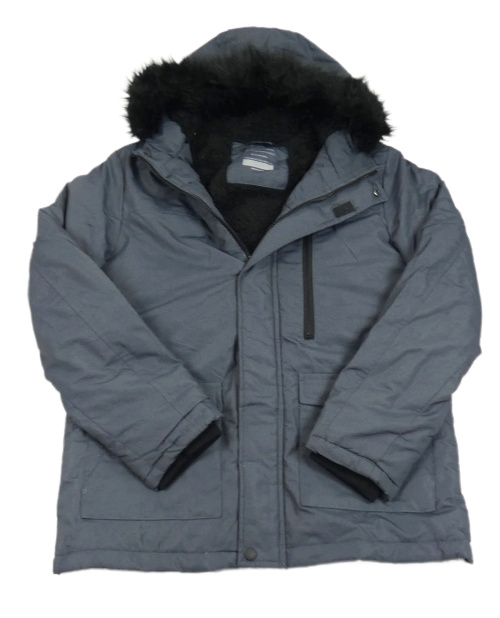 Tmavošedá melírovaná šusťáková zimní bunda s kapucí s kožešinou PRIMARK