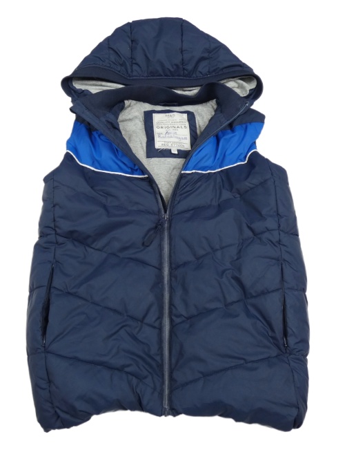 Tmavomodro-cobaltově modrá prošívaná šusťáková zateplená vesta s kapucí M&S