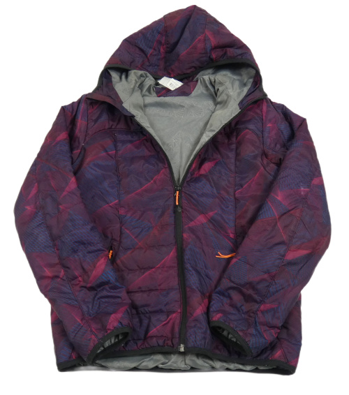 Vínovo-tmavomodrá vzorovaná šusťáková zateplená funkční bunda s kapucí Decathlon