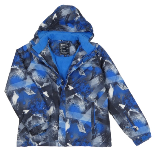 Modro-tmavošedá vzorovaná šusťáková funkční lyžařská bunda s kapucí Mountain Warehouse
