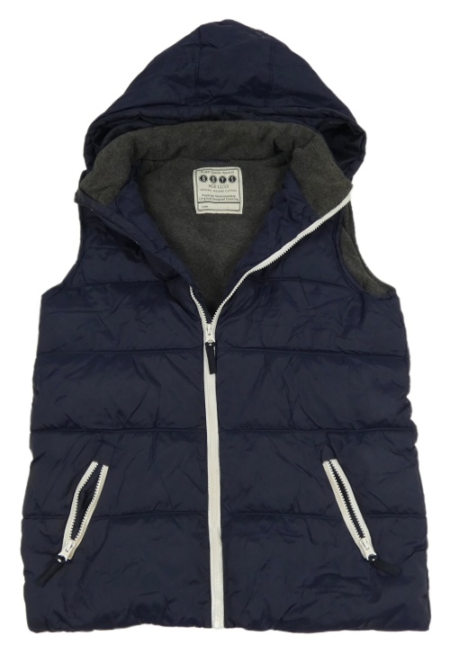 Tmavomodrá šusťáková prošívaná zateplená vesta s kapucí
