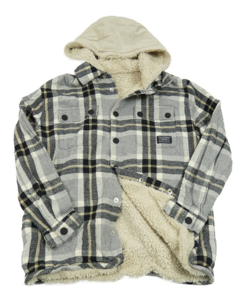 Šedo-černo-béžová kostkovaná zateplená košilová bunda s kapucí F&F