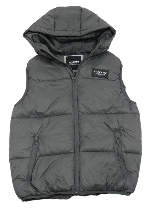 Tmavošedá šusťáková zateplená vesta s nášivkou a kapucí McKenzie