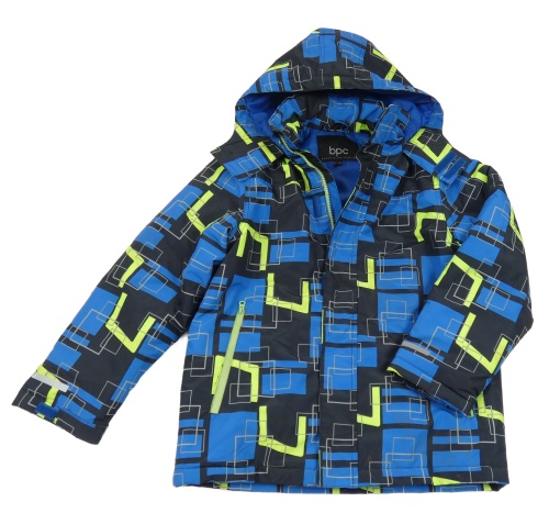 Modro-černo-zelená vzorovaná šusťáková zimní bunda s kapucí bpc