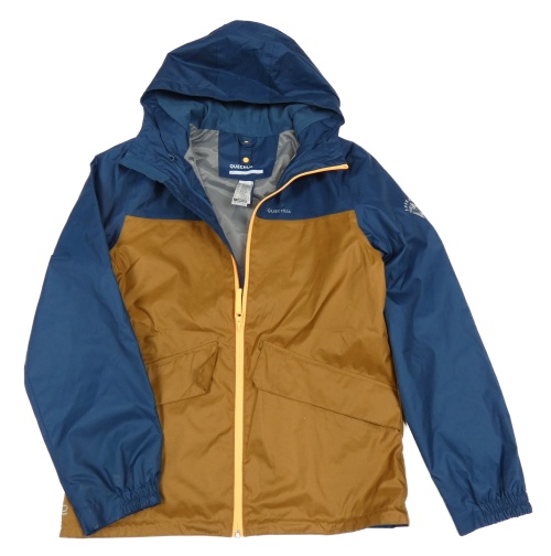 Tmavomodro-medová šusťáková jarní funkční bunda s kapucí Quechua