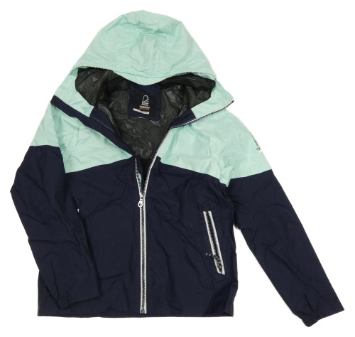 Tmavomodro-mintová šusťáková jarní bunda s kapucí