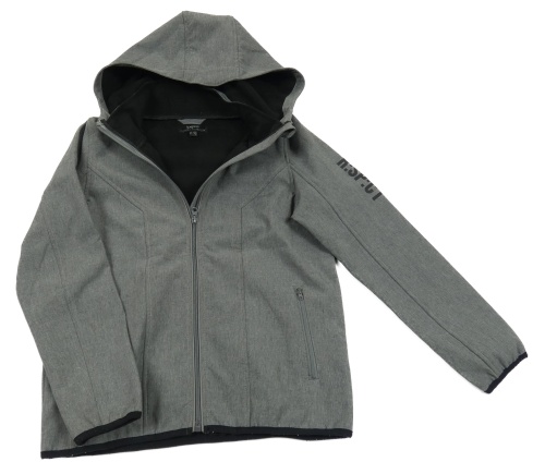 Šedá melírovaná softhellová bunda s kapucí bpc