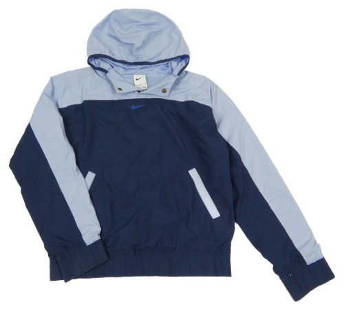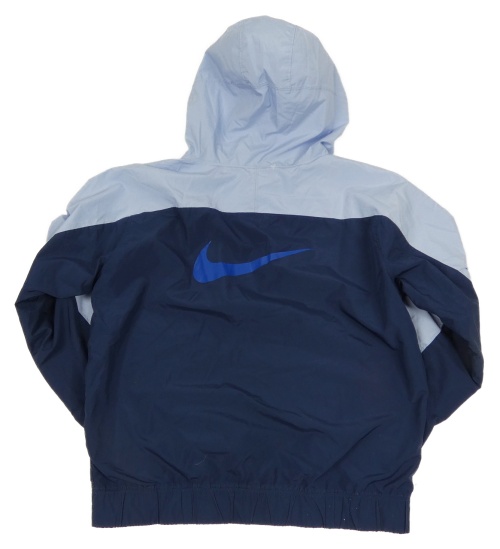 Světlemodro-tmavomodrá šusťáková sportovní bunda s logem a kapucí Nike