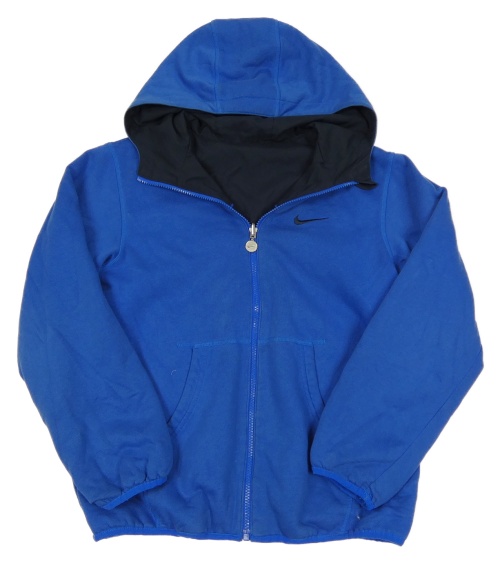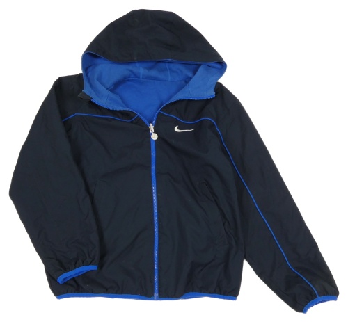Tmavomodrá šusťáková jarní oboustranná bunda s logem a kapucí Nike