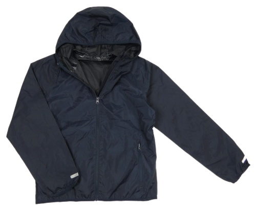 Tmavomodrá šusťáková nepromokavá bunda s kapucí
