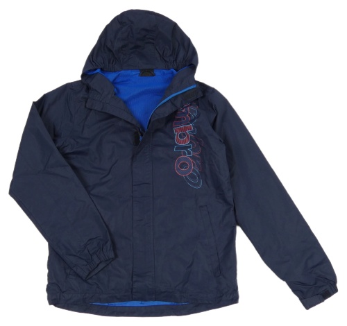 Tmavomodrá šusťáková sportovní bunda s logem a kapucí Umbro