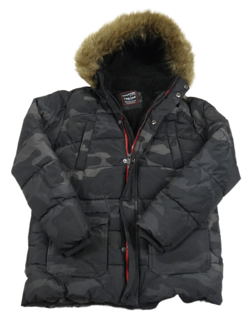 Černo-šedá army šusťáková zimní bunda s kapucí s kožešinou Chapter young