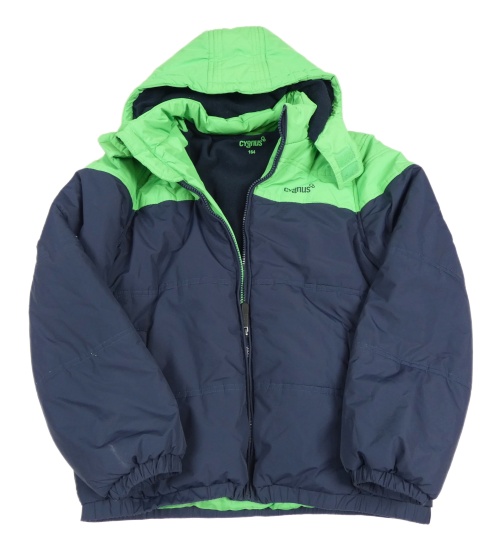 Tmavomodro-zelená šusťáková zimní bunda s kapucí