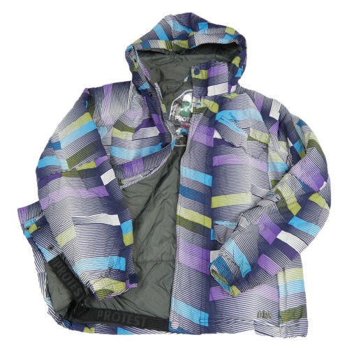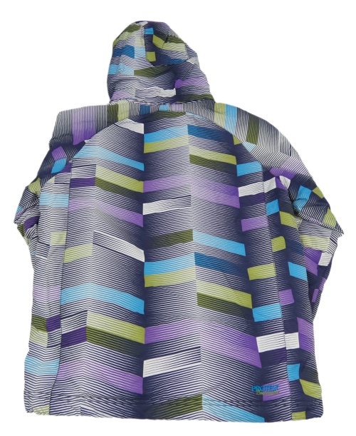 Tmavomodro-bílo-zelená vzorovaná šusťáková lyžařská bunda s kapucí
