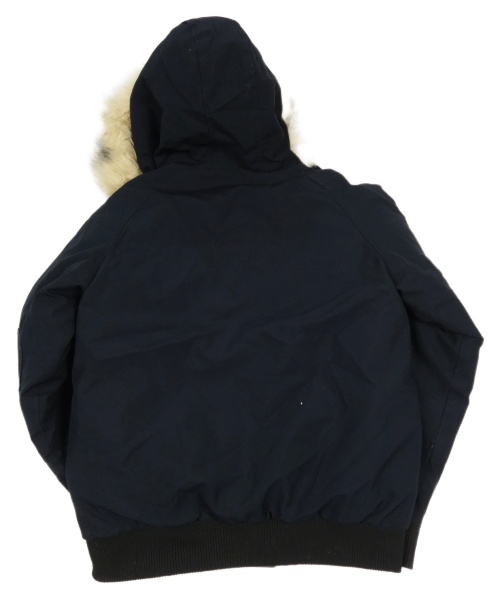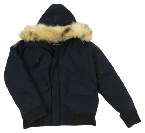 Tmavomodrá šusťáková zimní bunda s kapucí s kožešinou