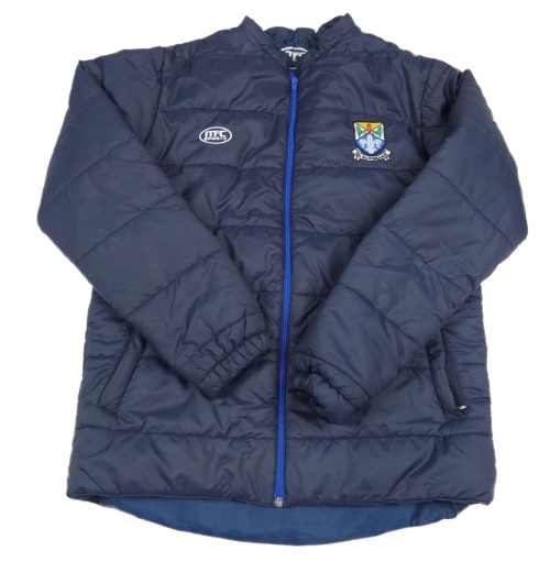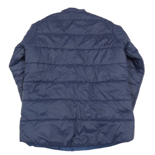 Tmavomodrá šusťáková prošívaná zateplená bunda s nášivkami