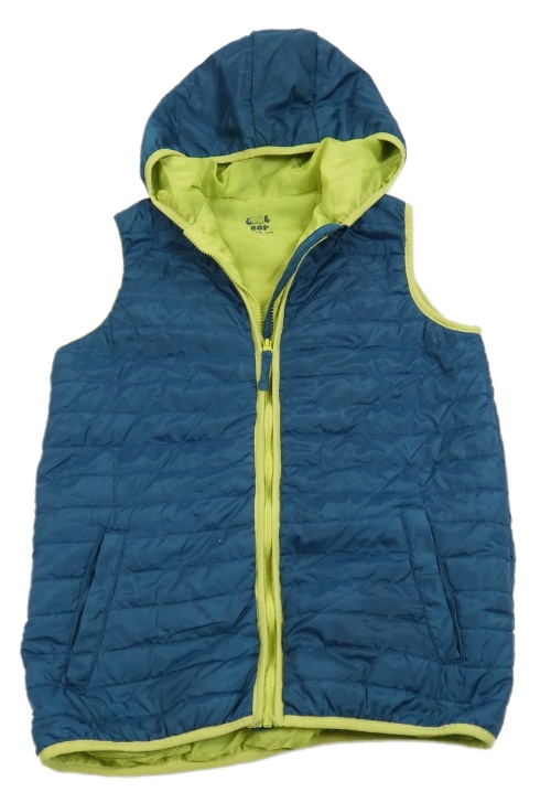 Petrolejová šusťáková prošívaná zateplená vesta s kapucí