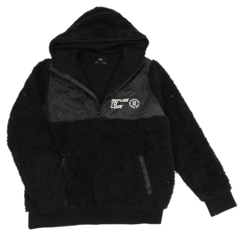 Černá huňatá/šusťáková mikina s nápisem a kapucí C&A
