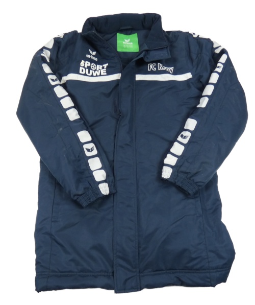 Tmavomodrá šusťáková sportovní bunda s nápisy a ukrývací kapucí Erima