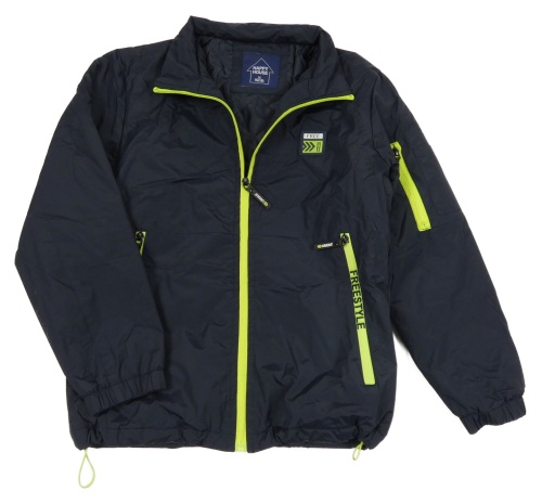 Tmavomodrá šusťáková zateplená bunda s neonovými prvky
