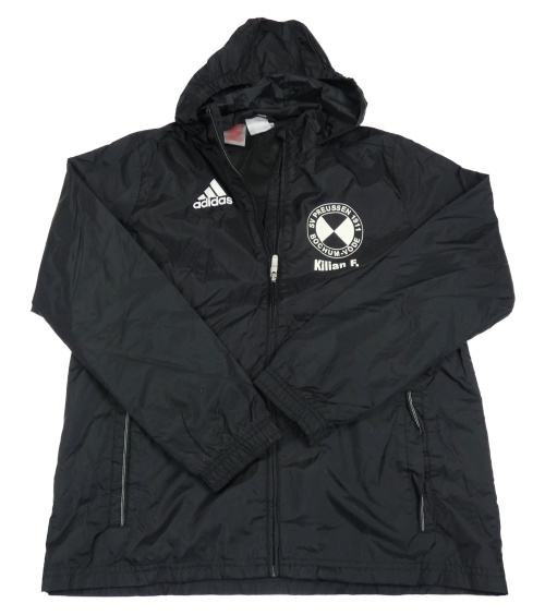 Černá šusťáková sportovní bunda s potiskem a kapucí Adidas