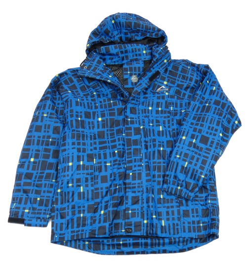 Modro-černo-žlutá kostkovaná šusťáková jarní funkční bunda s logem a kapucí McKinley
