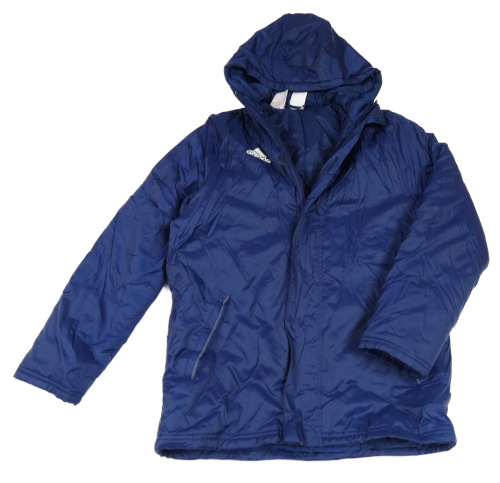 Tmavomodrá šusťáková zateplená bunda s kapucí Adidas