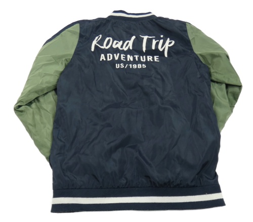 Tmavomodro-zelená šusťáková jarní bunda s nášivkou