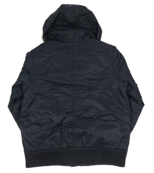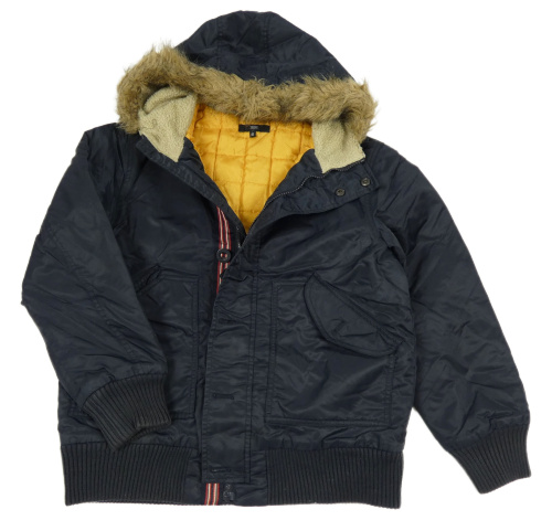 Tmavomodrý šusťákový zateplený bomber s kapucí s kožešinou Jasper Conran