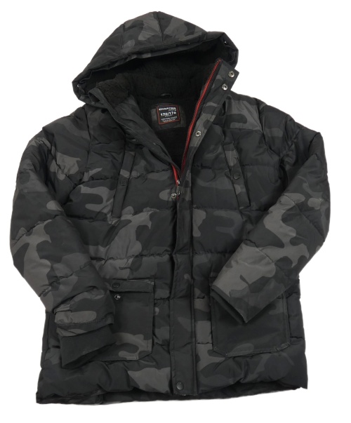 Černo-tmavošedá army prošívaná šusťáková zimní bunda s nášivkou a kapucí Chapter young