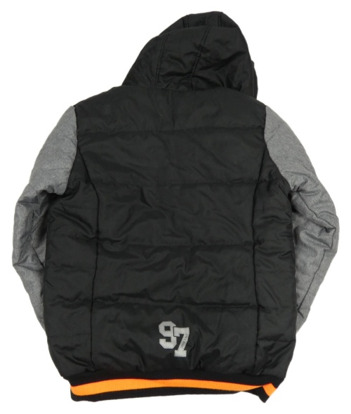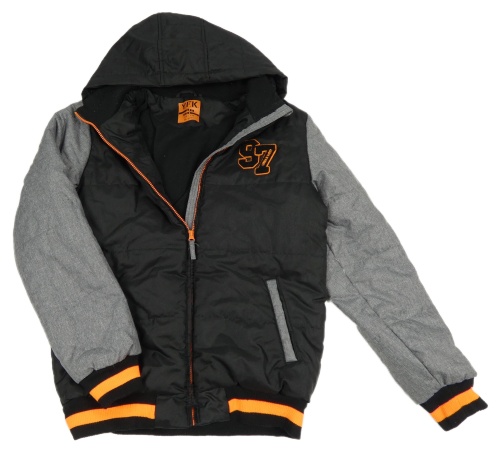 Černo-šedá šusťáková zimní bunda s číslem a kapucí Y.F.K.