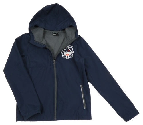 Tmavomodrá softshellová bunda s výšivkou a kapucí