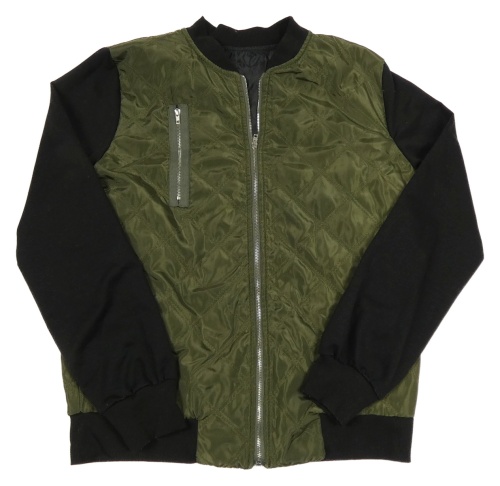 Khaki-černý šusťákový lehký bomber s mikinovými rukávy