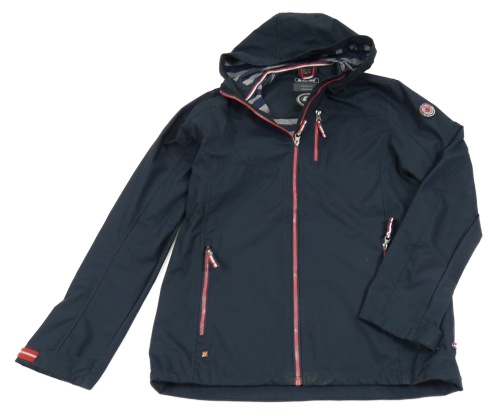 Tmavomodrá šusťáková bunda s nášivkami a kapucí Killtec