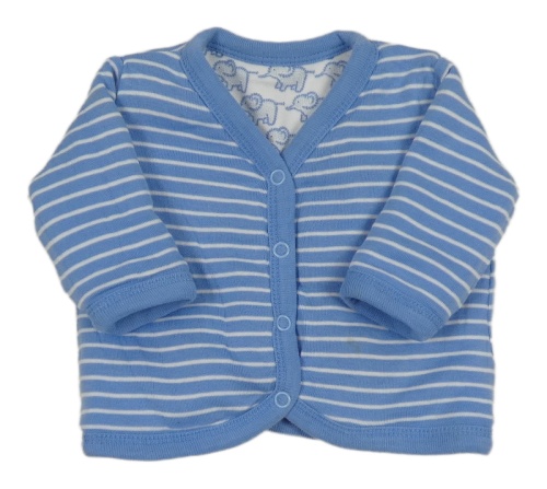 Modro-bílý pruhovaný zateplený oboustranný kabátek